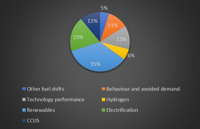 This week we look at cumulative emissions reduction by mitigation measure necessary to achieve the Net Zero Scenario (2021-2050)…. Guess who must play the biggest role? Renewables!